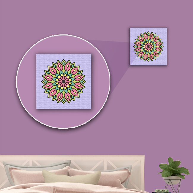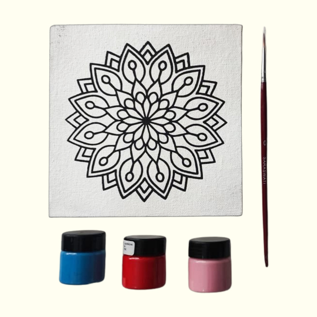 Canvas Base: Premium textured Mandala pre-printed canvas.